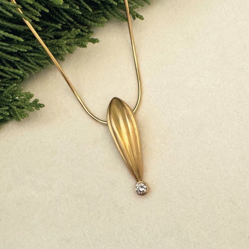 According to the Kundalini philosophy, seeing this symbol in a vision signifies enlightenment. The golden light represents a divine presence and can be accompanied by a feeling of being whole and fulfilled, while the shape of the honey drip symbolizes the third eye opening. The feeling of this sacred symbol kept calling to Sarah and demanded to be explored as exquisite jewelry.